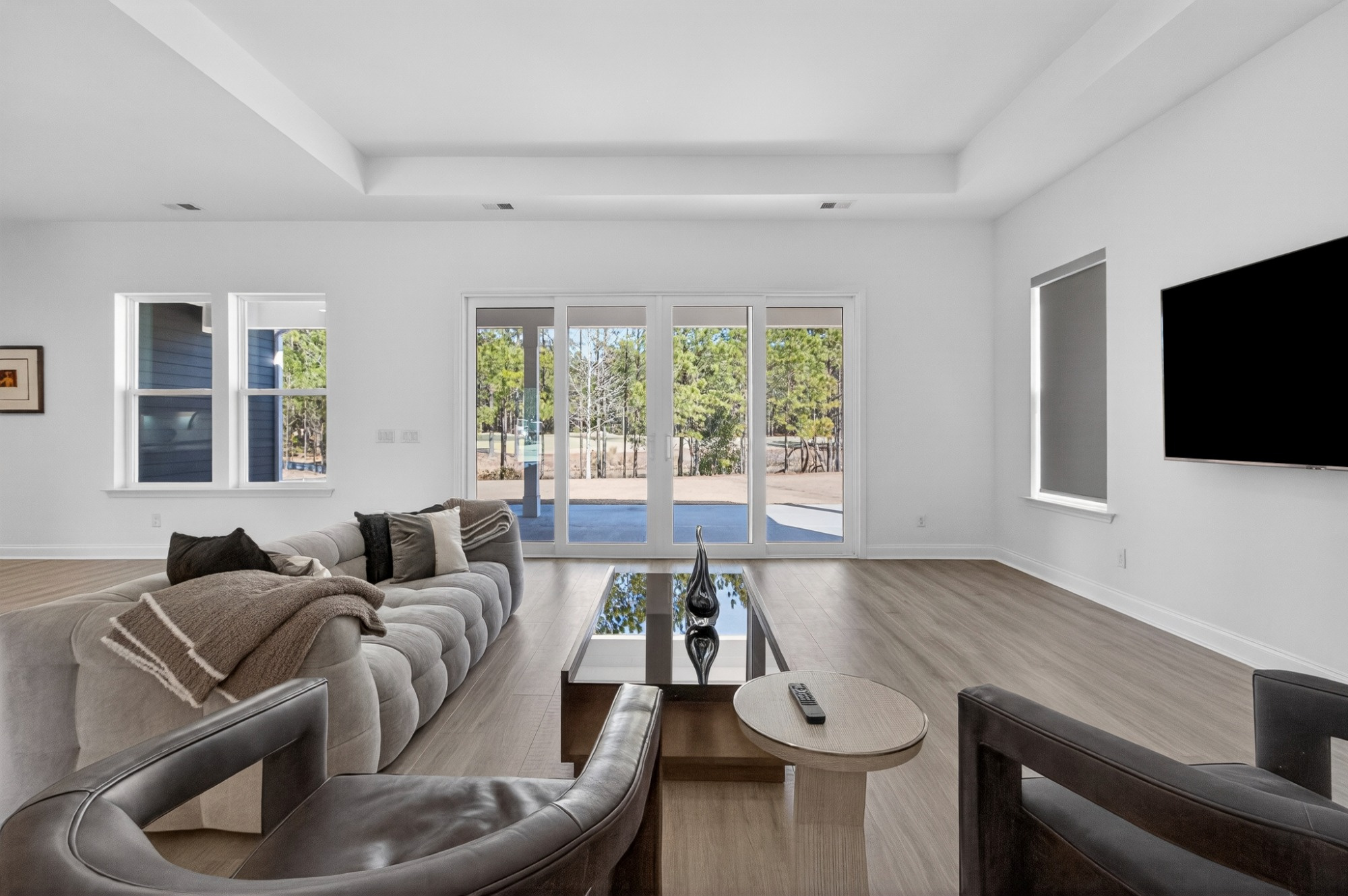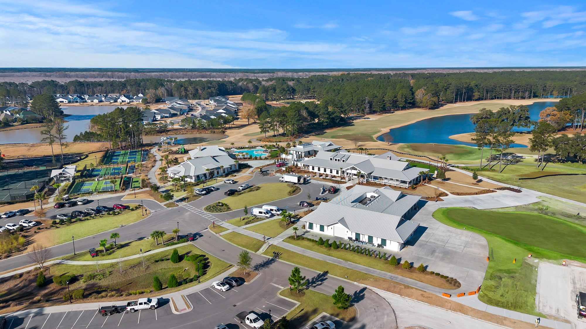 Set on a 1/3rd acre exceptional acre homesite, this residence enjoys greenbelt privacy on three sides, with views of the 10th fairway and green, a bordering lagoon, and mature pine trees creating a peaceful, natural backdrop. Sunrise and sunset views add to the sense of space and serenity. The home offers approximately 2,818 square feet of bright, open living space, including two spacious primary bedrooms with flexibility to add a third bedroom if desired. The primary suite features a thoughtfully designed ensuite bath with a long double sink, walk-in tiled shower, generous closet space, and a built-in dressing/vanity area that enhances both function and flow. Numerous upgrades are found throughout, including additional windows that flood the home with natural light. Included with the sale are a new refrigerator, washer and dryer, window treatments, and television. Residents of Riverton Pointe enjoy access to a new clubhouse, fitness center, pickleball and tennis courts, driving range, pro shop, and resort-style amenities-offering a refined Lowcountry lifestyle in a beautifully maintained golf community.
